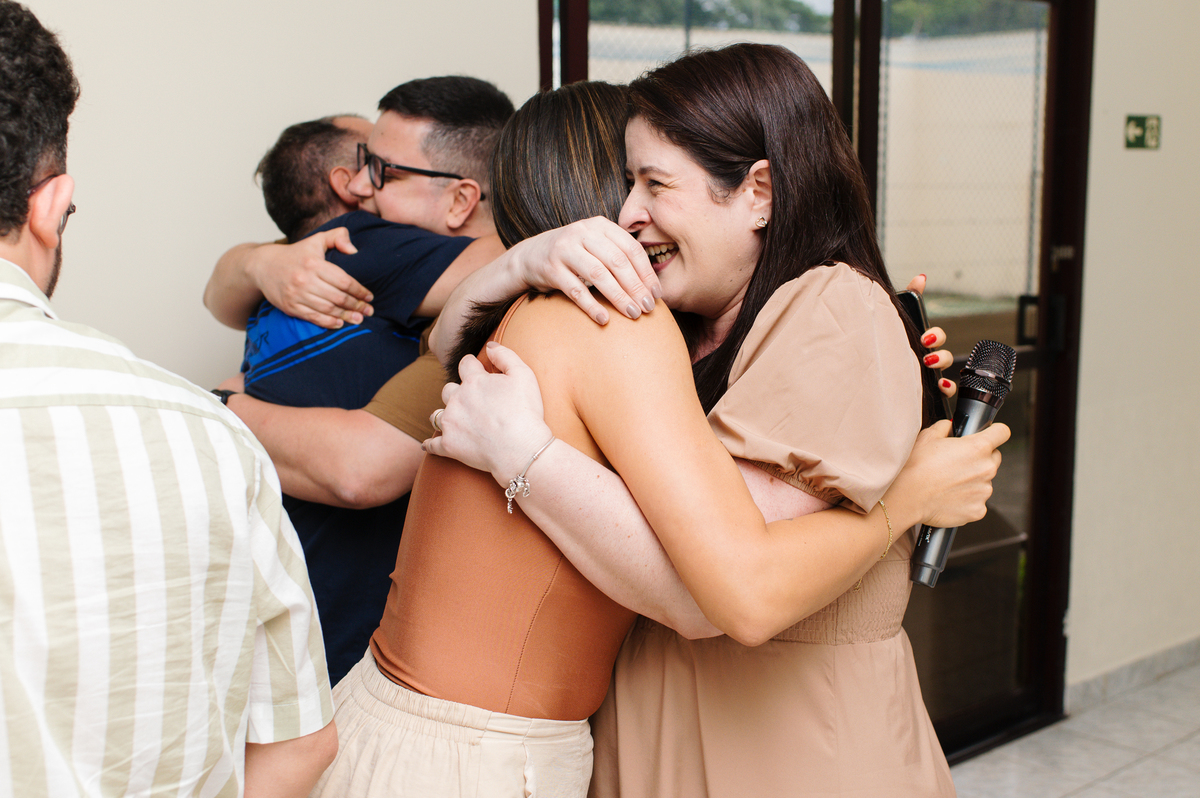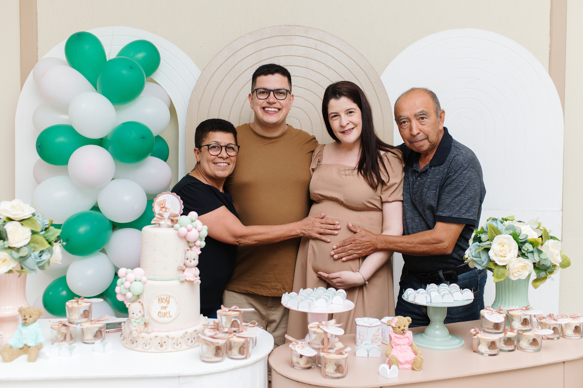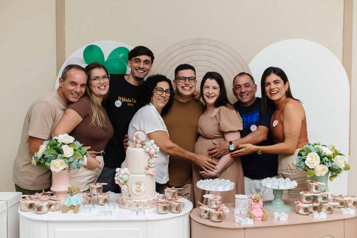 De longe, trouxeram no coração um segredo… e aqui, perto de quem mais amam, compartilharam a maior notícia de todas: ela vem aí